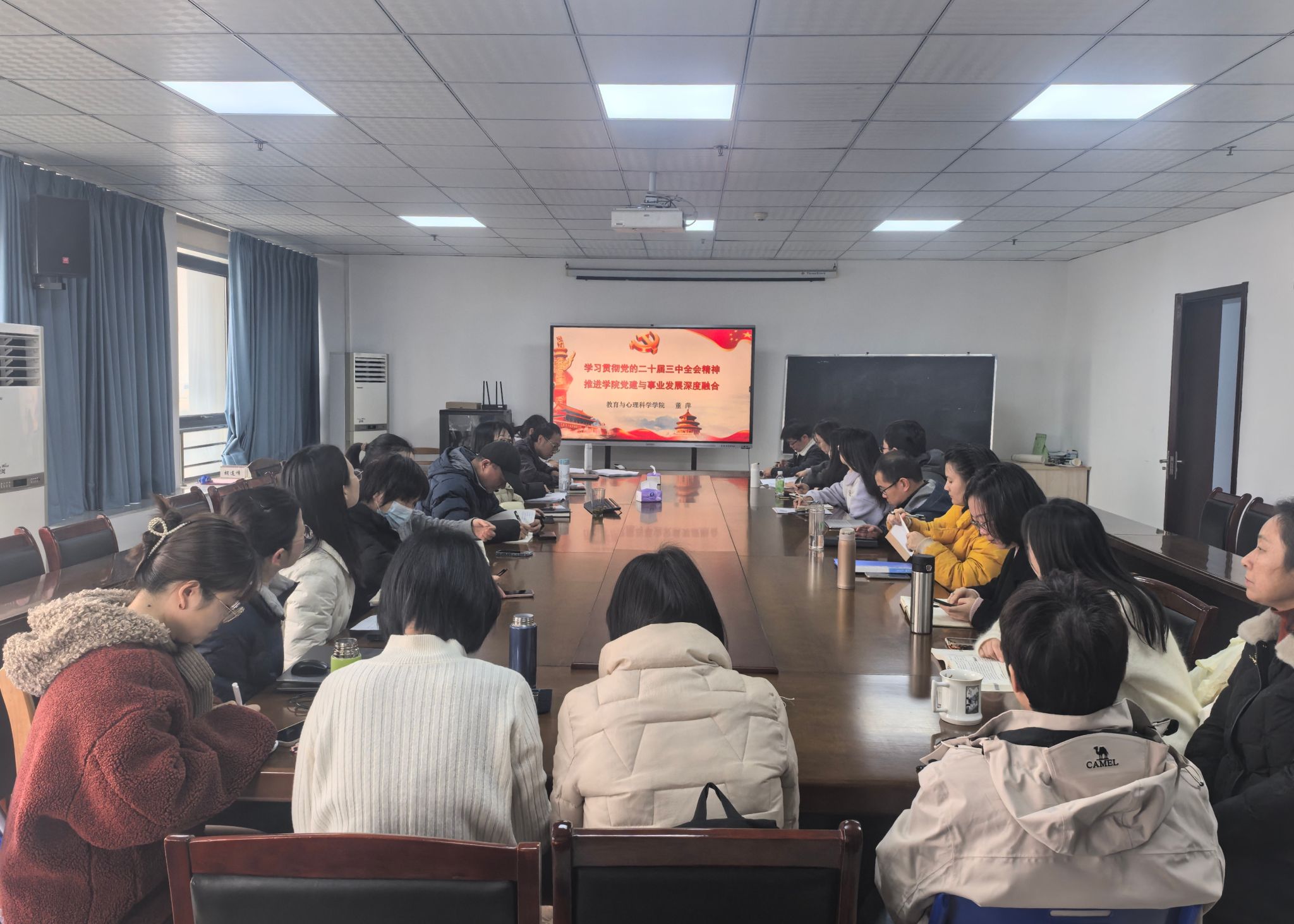 董萍从“深刻领会和把握党的二十届三中全会精神”“学院党委、支部建设与事业发展深度融合的主要任务”“如何推动学院党建与事业发展深度融合取得实效”等三个方面进行阐述,她详细解读了全会的重大意义、主要内容和丰富内涵,重点宣讲党的二十届三中全会中关于教育、科技和人才的重要论述,并结合学院高质量发展中存在的亟待解决的问题,就如何推动学院党建与事业发展深度融合、激发新的活力和动力进行系统、深入的研判和讲解。她强调,全体党员同志要全面深刻理解全会精神,将全会精神贯彻落实到人才培养、教学科研、学科建设、社会服务等工作的全过程。她结合学院实际,对2025年工作提出具体要求:一是加强“双带头人”建设,强化党建和业务工作同谋划、同部署、同落实、同检验;二是强化理论武装,善学善用党的创新理论,用党的创新理论指导事业发展;三是发扬战斗精神、弘扬奉献精神 、提倡吃苦在前享乐在后;四是聚焦重点任务,统筹谋划,压实责任,系统推动学院党建和事业高质量发展。