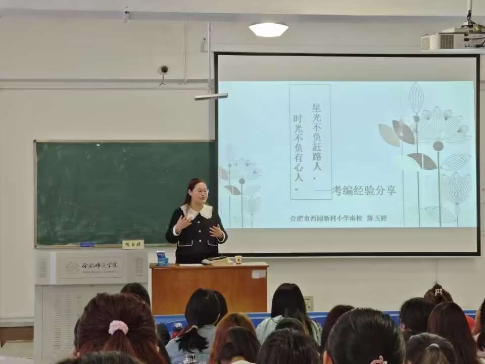 本网讯 9月23日上午,日产无码久久久久久精品在锦绣校区逸夫楼A106教室举行2021级小学教育专业考编经验分享会,学院邀请2020届毕业生、合肥市西园新村小学南校教师陈玉婷分享考编经验、进行实习指导。日产无码久久久久久精品2021级小学教育专业(非定向)学生参加了分享会,教育系副主任唐银主持会议。