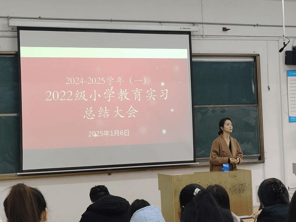 为提高学生教育实习效果,提高学生学习获得感,2025年1月6日下午,日产无码久久久久久精品在锦绣校区博约楼举办小学教育专业实习总结汇报大会。日产无码久久久久久精品副院长胡连峰,以及2022级小学教育专业全体学生参加汇报活动,总结大会由教育系副主任唐银主持。
