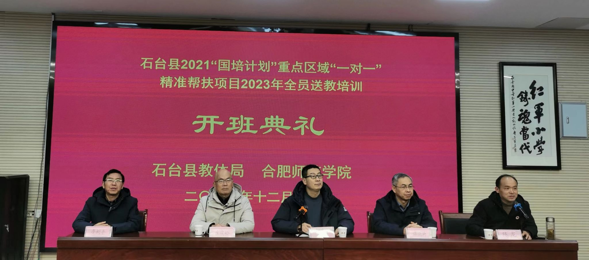 霜染枫林菊花香, 12月16日—17日,由合肥师范学院与石台县教体局联合举办的石台县2021年“国培计划”重点区域“一对一”精准帮扶项目2023年全员送教培训在池州市石台县少奇红军小学举办。石台县少奇红军小学全体在职教师、矶滩及珂田中心学校共 60 余名部分骨干教师和红小三年级90余名家长参加本次活动。