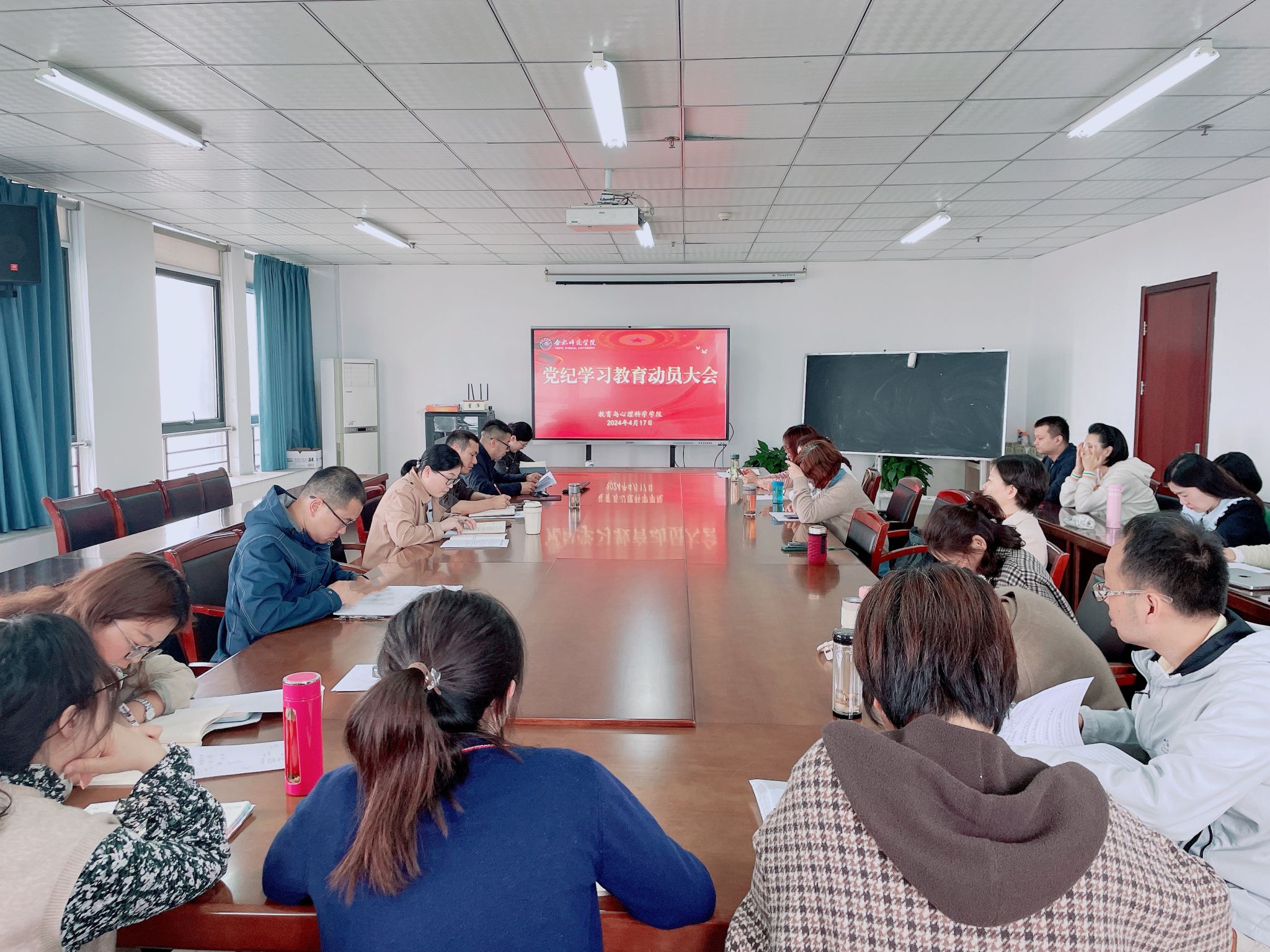 4月17日下午,日产无码久久久久久精品在行知楼710会议室召开教职工理论学习会议,动员部署党纪学习教育。党委书记董萍主持会议。
