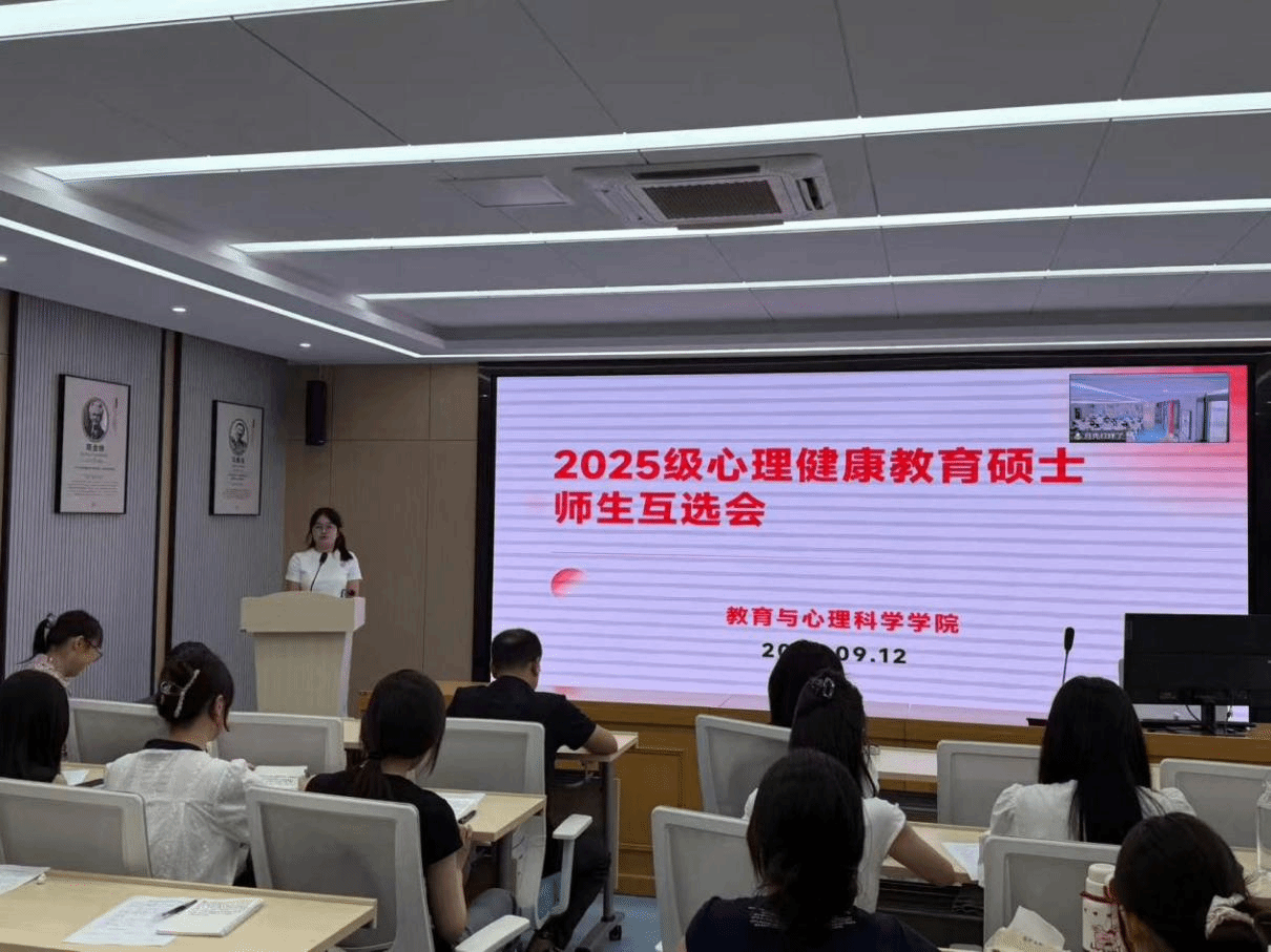 在导师介绍环节,各位导师依次介绍了研究方向、学术成果和科研项目,充分展示了多元的学科领域与治学理念,为学生提供了广阔的选择空间。在学生自我介绍环节,同学们结合自身背景与兴趣,阐述了对未来研究方向的思考与期待,展现出对心理健康教育研究与实践的热情与信心。