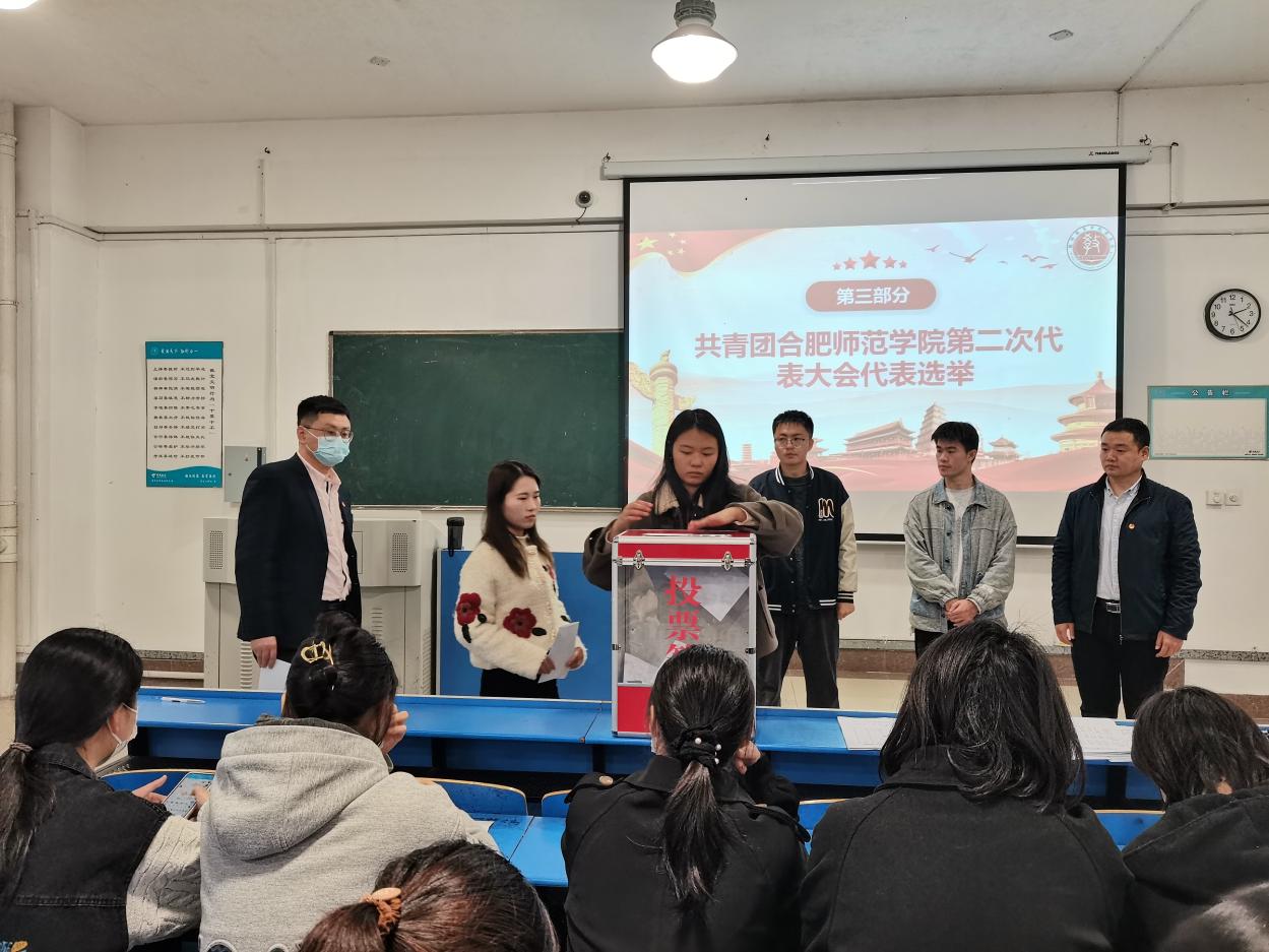 根据议程安排,大会选举产生共青团合肥师范学院第二次代表大会代表、合肥师范学院第四次学生代表大会代表、共青团合肥师范学院教师教育学院委员会委员、教师教育学院学生委员会委员和教师教育学院学生会主席团成员。