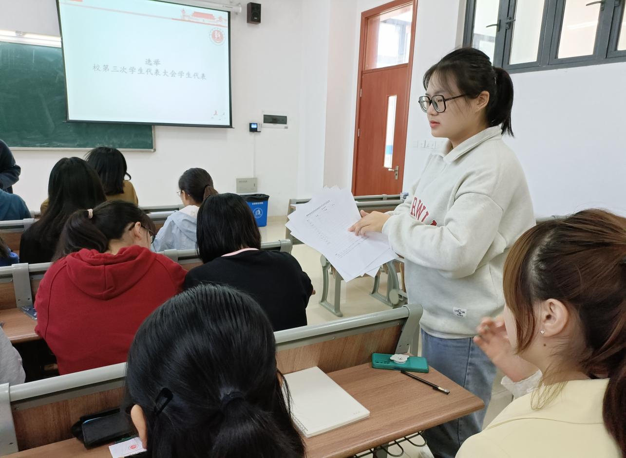 随后会议选举产生教师教育学院新一届学生会主席团和合肥师范学院第三次学生代表大会代表,学生代表们在学习选举规则、了解各个侯选人的情况后,以无记名投票的方式,开展了投票选举。