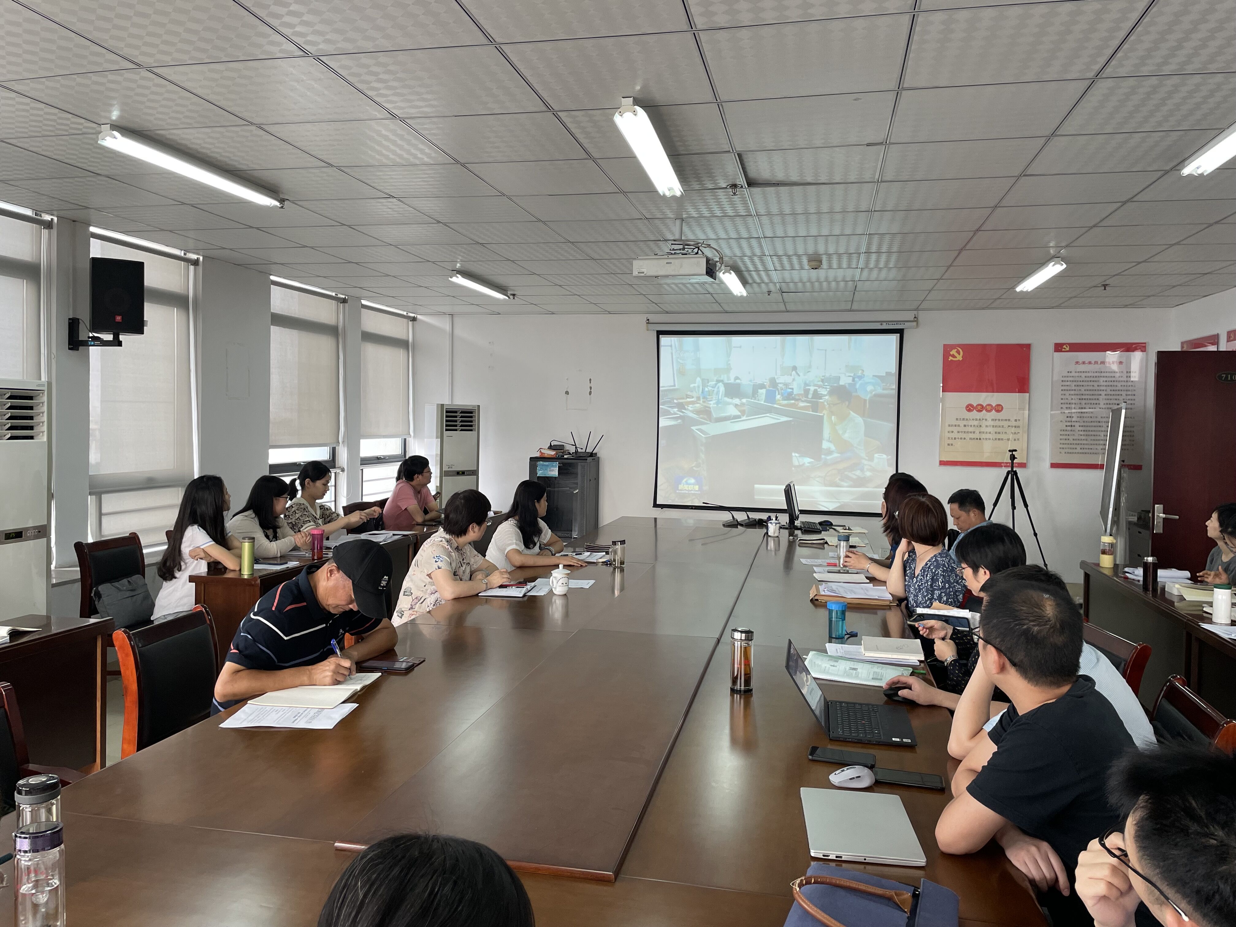 随后,穆娟带领全体教师再次学习了习近平总书记在清华大学考察时的讲话、《关于加强和改进新时代师德师风建设的意见》、《安徽省高等学校教师师德失范行为处理办法》、《合肥师范学院师德师风行为负面清单及处理办法》等内容,切实增强广大教师懂政策、知准则、存敬畏、守底线的政治自觉、思想自觉、行动自觉;并对教育部公开曝光的违反教师职业行为十项准则典型案例和安徽省高校出现的典型案例为反面教材展开警示学习,强化典型案例警示教育,教育引导全体教师以案明纪、以案示警、以案促改,做到自重、自省、自警,把师德规范内化于心,外化于行。会议最后,全体教职工集体收看了黄大年同志的先进事迹并学习了《习近平给全国高校黄大年式教师团队代表的回信》。