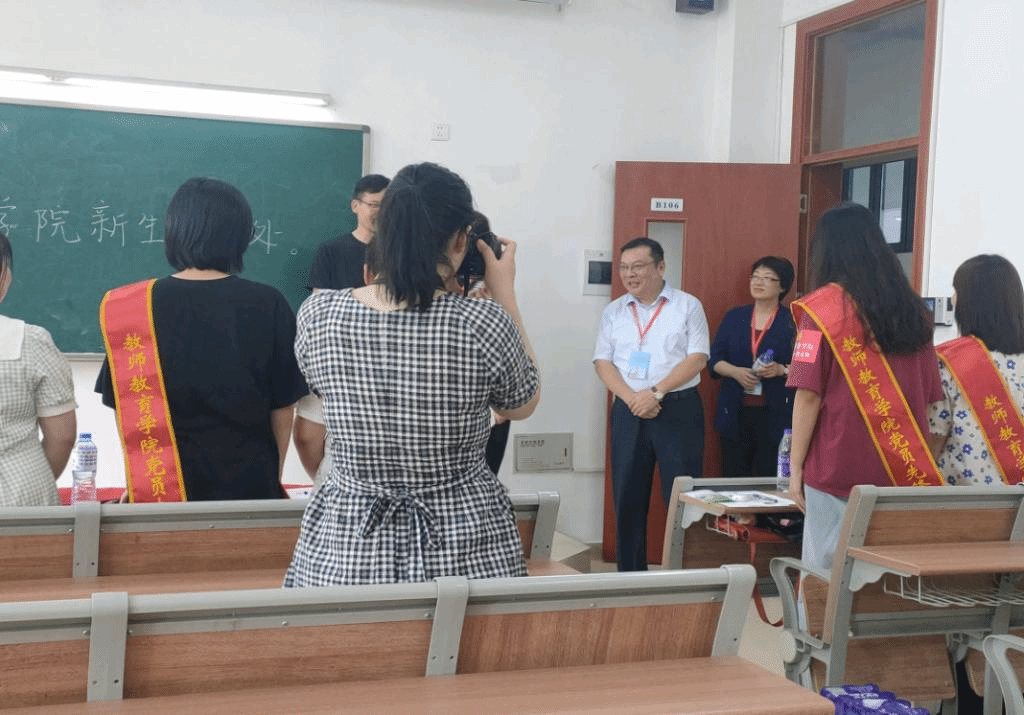学院党委书记徐成钢、校长方东玲等院领导看望慰问学院迎新服务站和服务队,了解报到情况,学院师生备受鼓舞。教师教育学院党委书记穆娟、副院长闫龙和全体辅导员老师在各个服务点指导迎新工作,解决临时突发状况,帮助新生顺利入校,并向工作人员表示慰问,希望同学们将迎新工作做实做细,为新生提供良好、顺畅的服务,志愿者张顺尧说:“尽管天气很热,志愿者的工作也很累,但看到新生顺利入校,家长欣慰的眼神,让我所有的工作都充满了动力。”