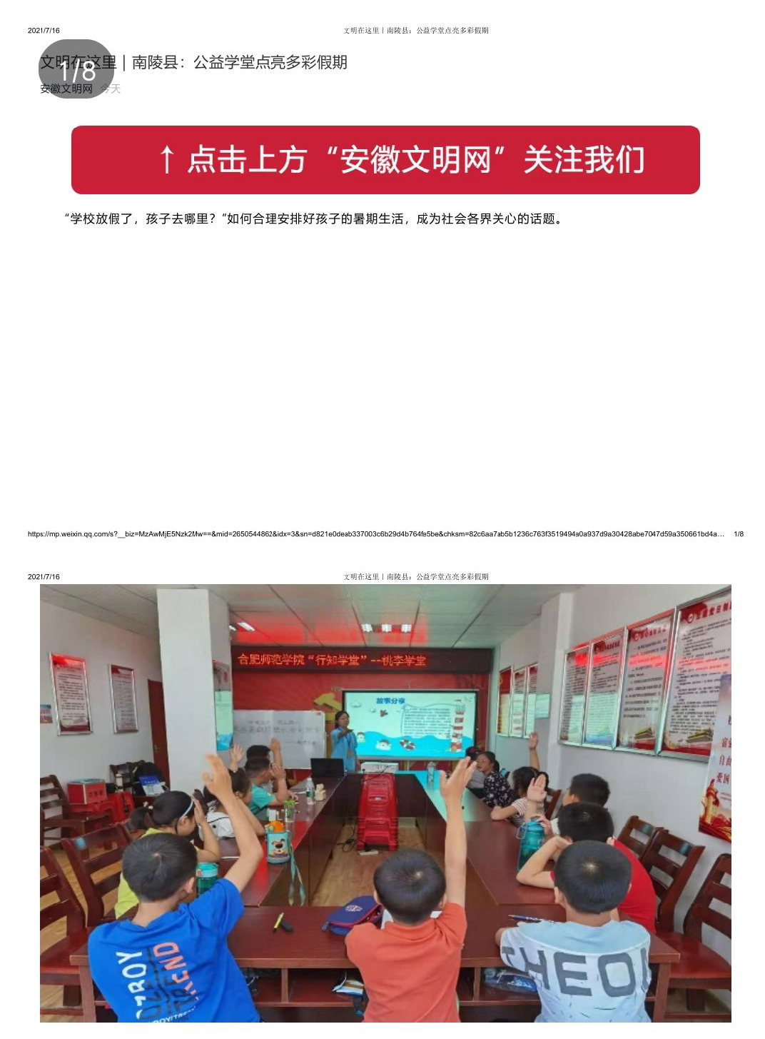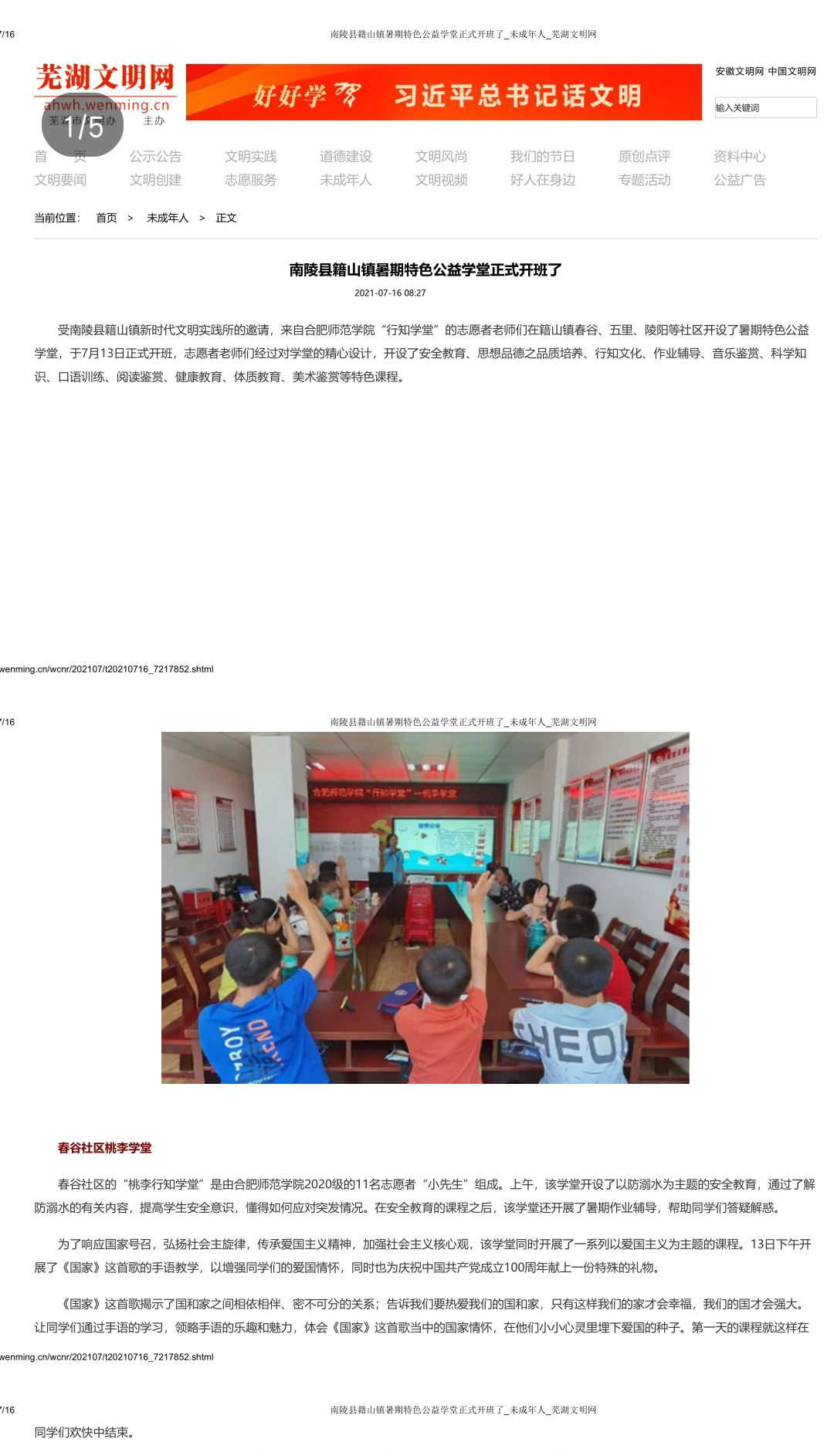 7月16日,安徽文明网、芜湖文明网分别对此进行报道。(教师教育学院:王磊 陈德蓉)