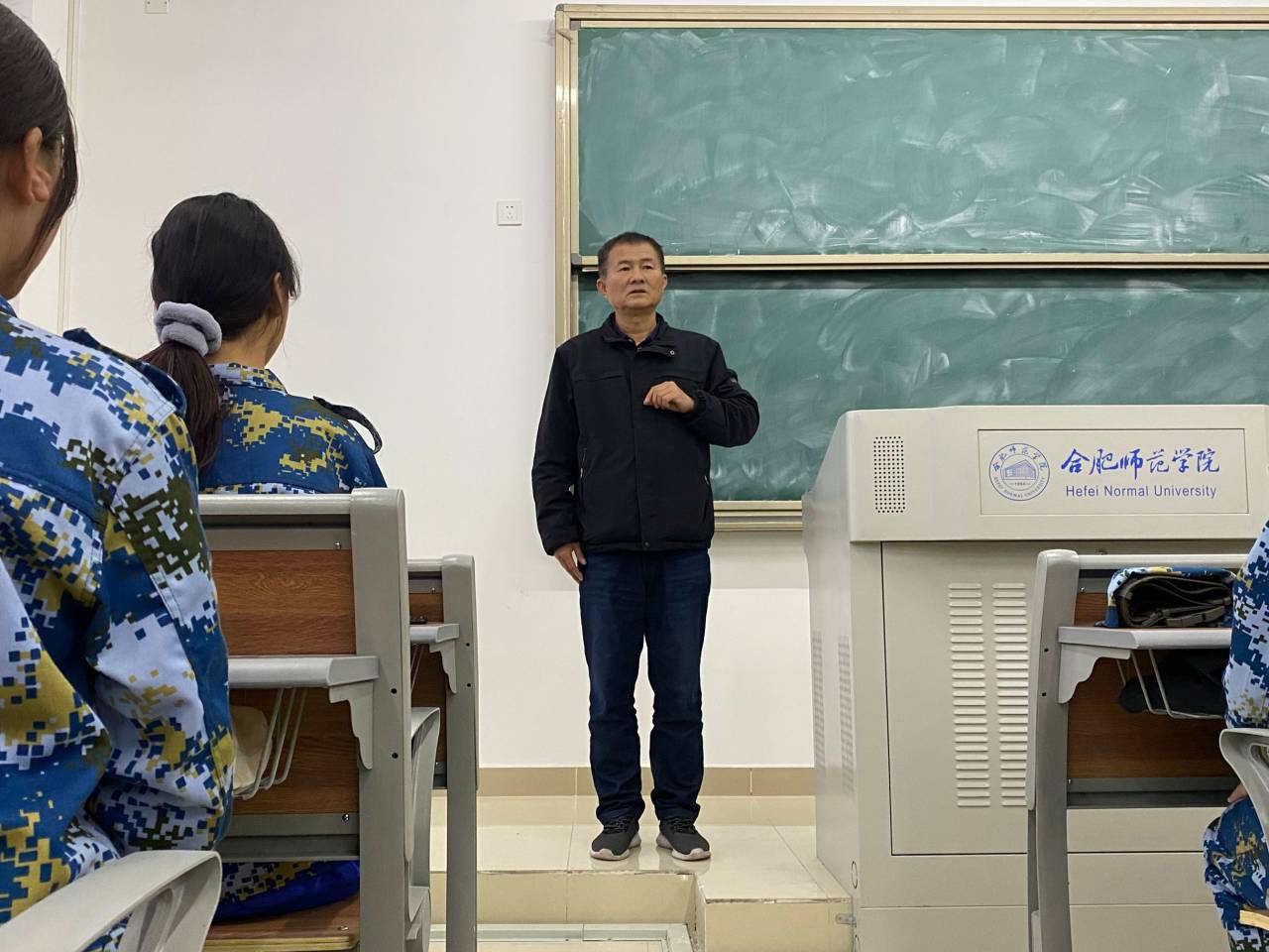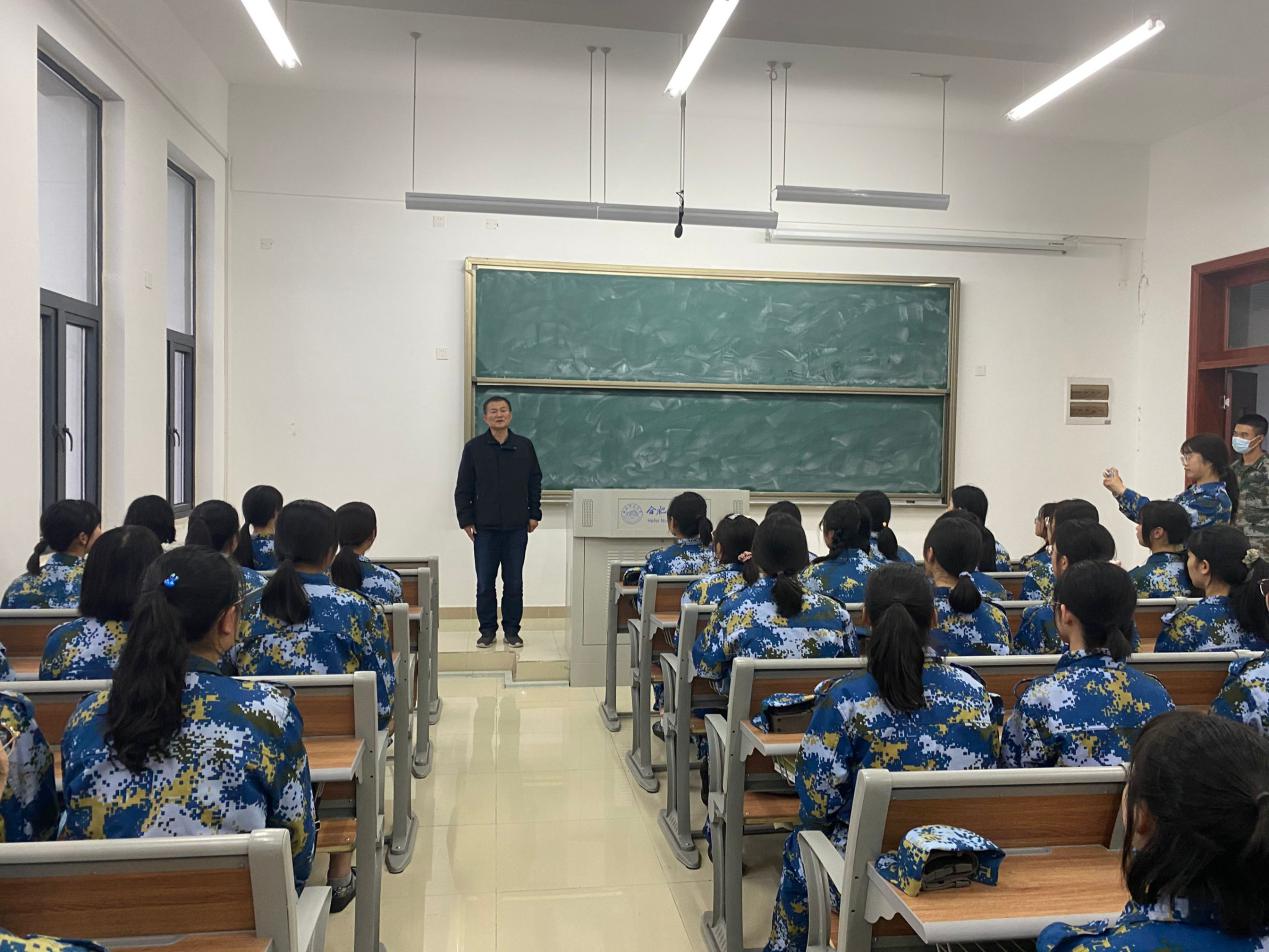 10月16日下午,教师教育学院副院长闫龙与新生辅导员一同前往铭传楼看望正在室内军训的新生们,并亲切问候了在座的新生和教官。