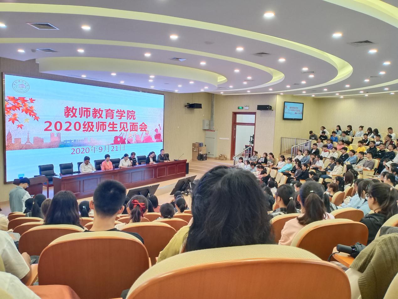 9月21号上午,教师教育学院2020级新生师生见面会在滨湖校区学术报告厅召开。教师教育学院党委书记穆娟、院长李群、副书记王东明、副院长闫龙、辅导员唐淼出席见面会,2020级全体普本新生参加会议,会议由分团委书记、学生党支部书记王磊主持。