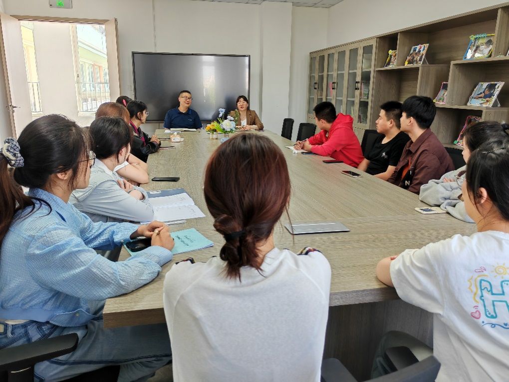 为提高学生实习过程质量,切实推动学生专业能力发展,5月7日下午,日产无码久久久久久精品副院长胡连峰到合肥市启明星幼教集团兰星幼儿园开展教育实习(研习)专题调研会。幼儿园园长王小婵、教学主任孙红出席会议,在该园实习的2021级学前教育13位同学参加会议。王小婵主持会议。