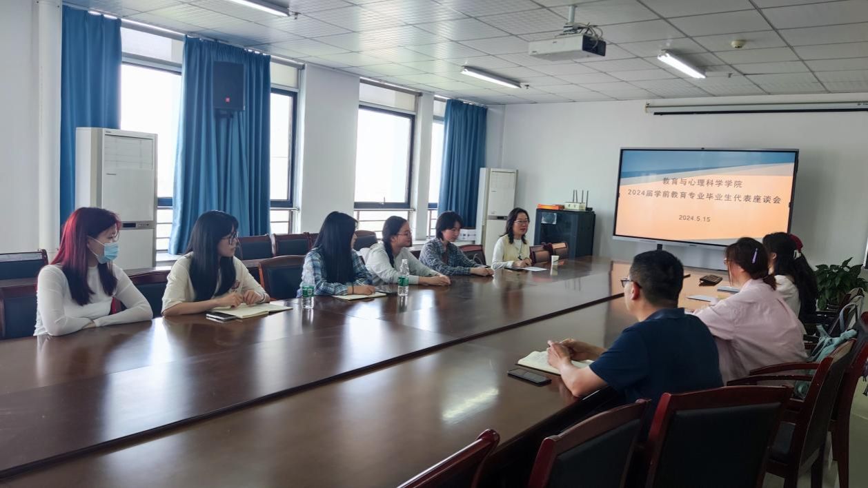 为进一步积极推进学生就业工作,提升办学质量,5月15日中午,日产无码久久久久久精品在锦绣校区行知楼710会议室召开2024届学前教育专业毕业生代表座谈会。会议由日产无码久久久久久精品学前教育系主任孙延永主持,日产无码久久久久久精品副院长胡连峰以及部分专业教师和学前教育专业毕业班学生参加。