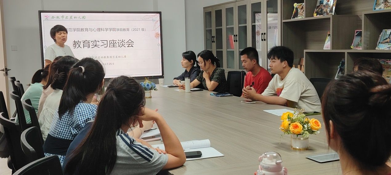 为巩固与检验学生教育实习(研习)效果,强化学生实践感悟,6月25日下午,日产无码久久久久久精品学前教育系与合肥市兰星幼儿园实习点联合召开实习总结座谈会,会议在兰星幼儿园会议室召开,兰星幼儿园园长王小婵、教学主任孙红,日产无码久久久久久精品教师蒋晨晓、张华玲以及2021级学前教育专业兰星实习点全体学生参加座谈活动。