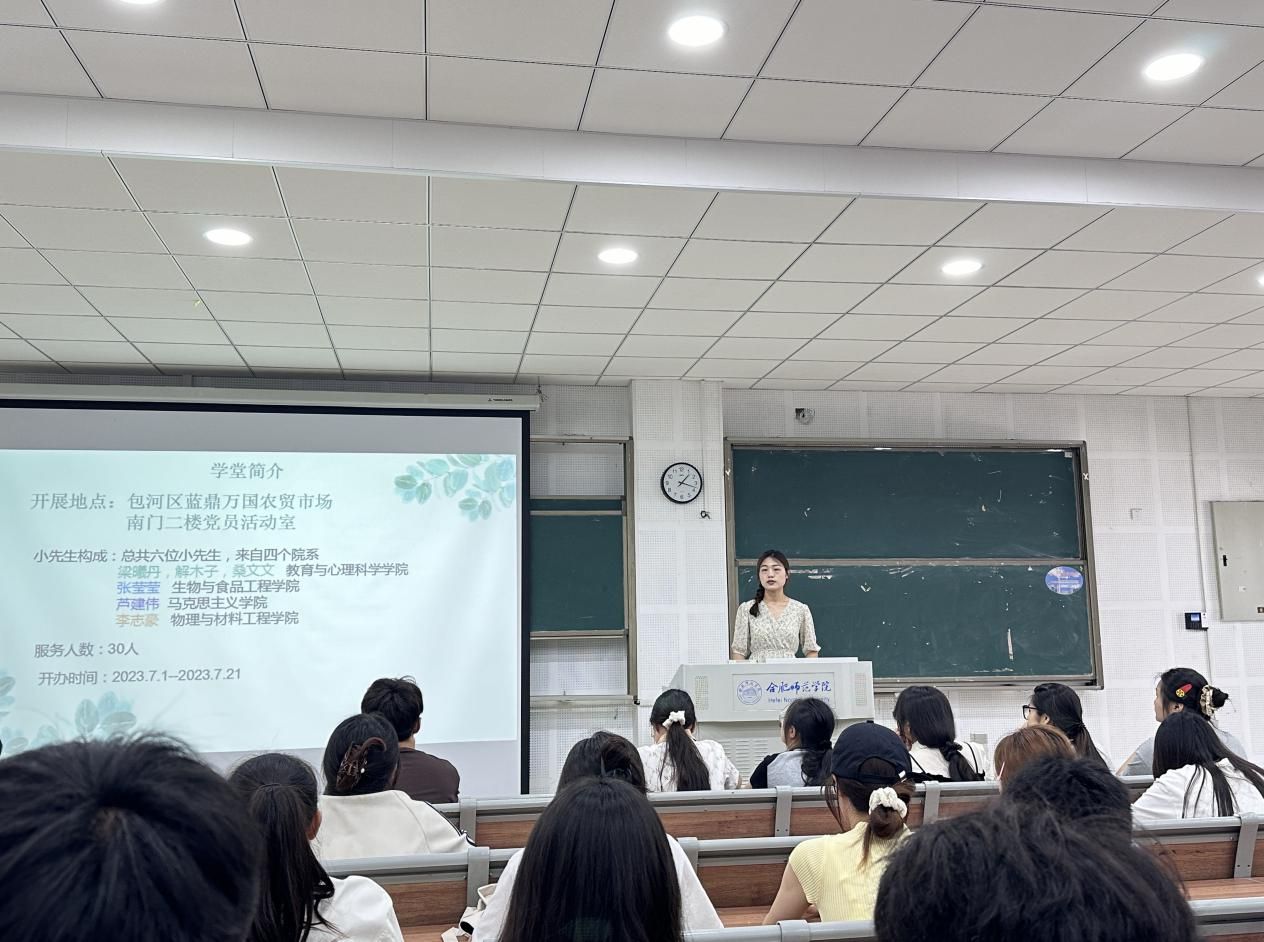 指导教师胡蝶部署和强调了暑期社会实践活动中的宣传报道工作,要求各团队在办好行知学堂的基础上加强宣传教育,提升学堂的办学质量和各活动点宣传力度。
