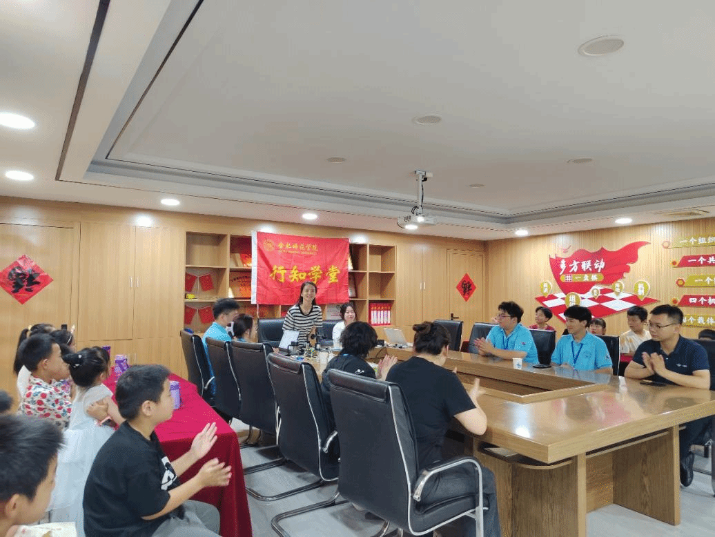 7月9日,日产无码久久久久久精品滨湖世纪社区行知学堂举行开班仪式。滨湖世纪社区金翰网格党委副书记张欣、日产无码久久久久久精品教师唐银及8位小先生、28名小学员参加了开班仪式。