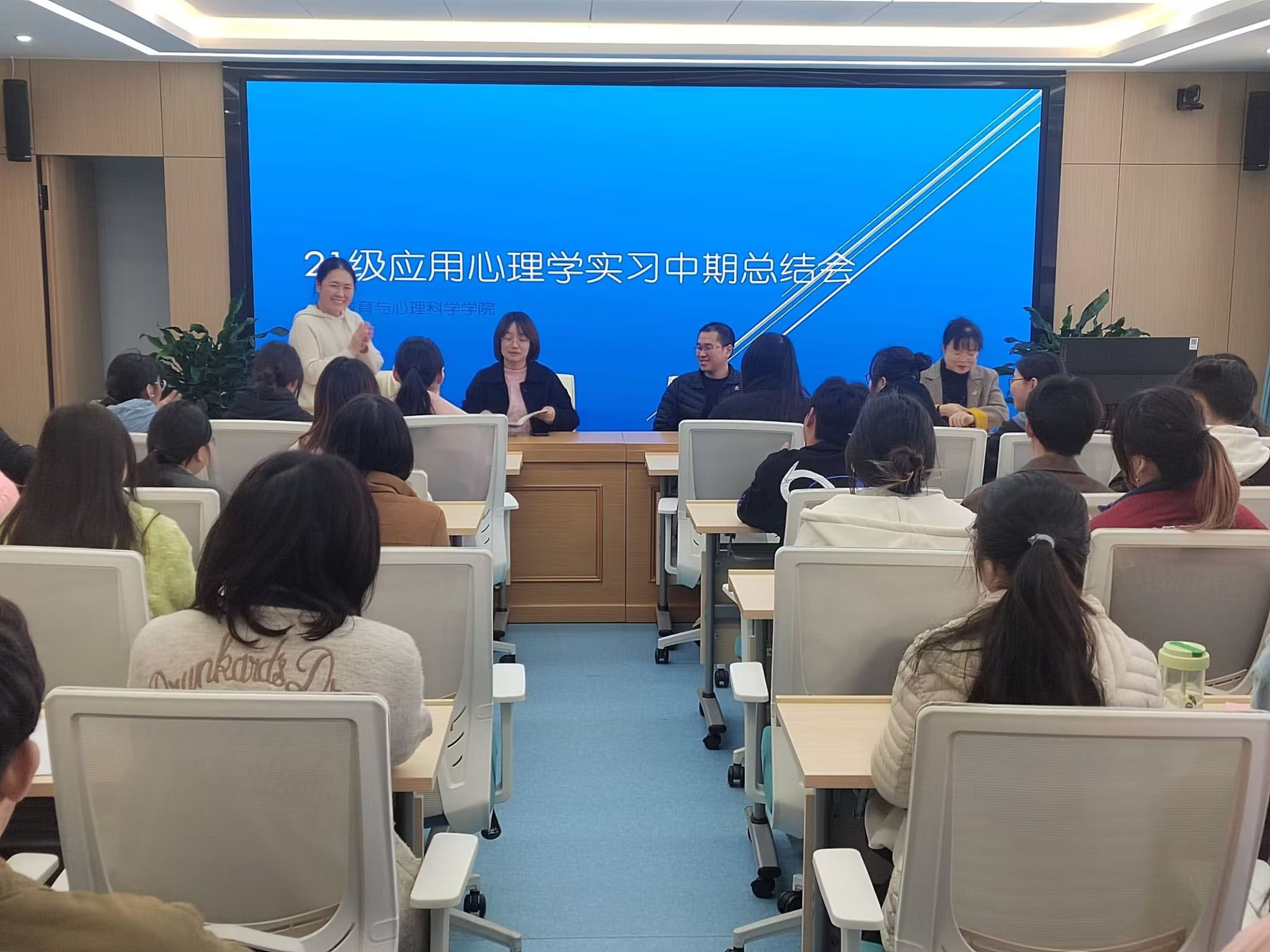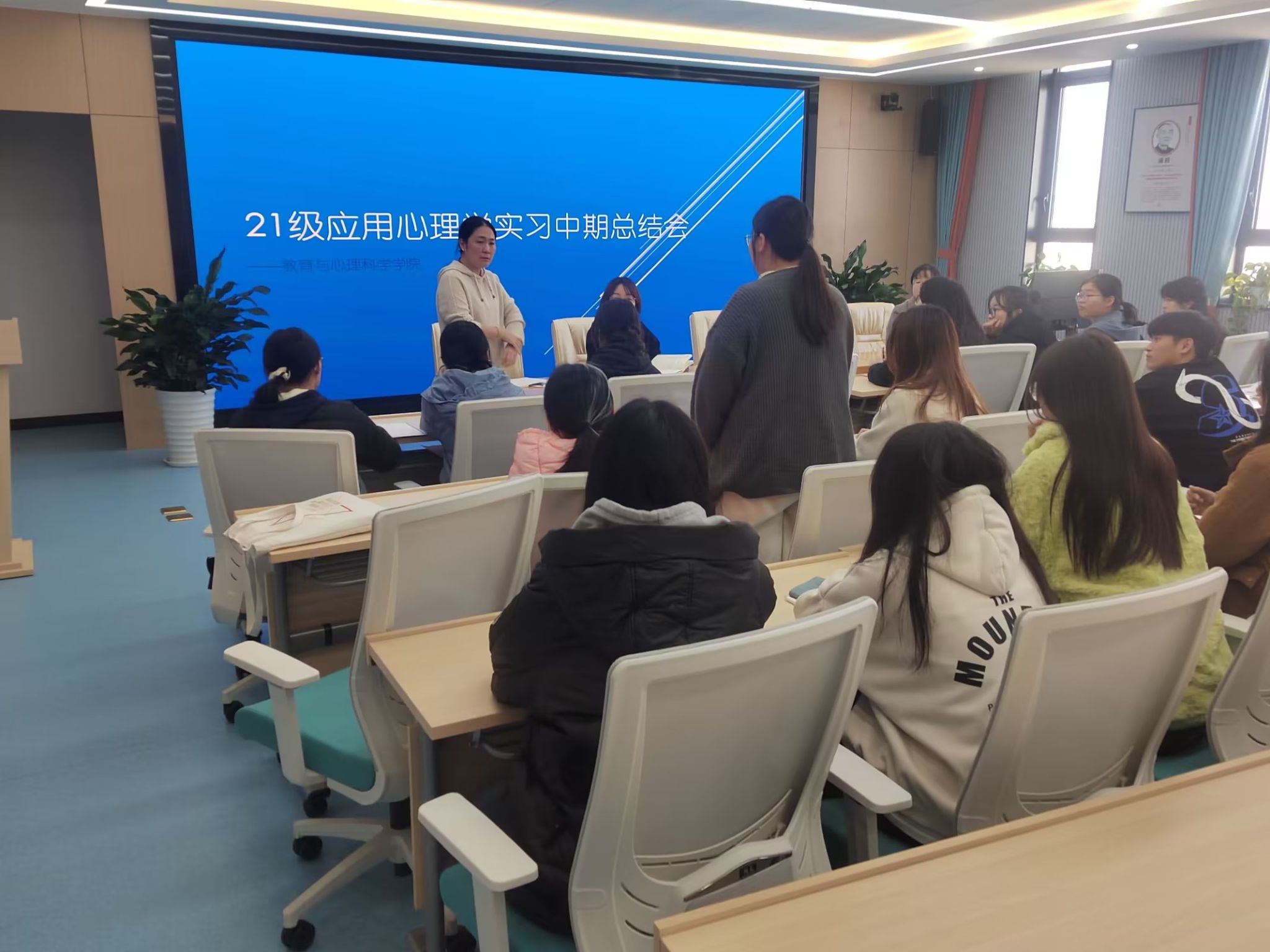 本网讯 为深入了解师范生教育实习情况,强化师范生教育实习工作,11月27日,日产无码久久久久久精品在图书馆7楼召开21级应用心理学专业实习中期总结大会,日产无码久久久久久精品副院长胡哲、心理系主任黄凤、实习负责老师梁昕和实习带队老师吴姗姗出席会议,会议由梁昕老师主持。