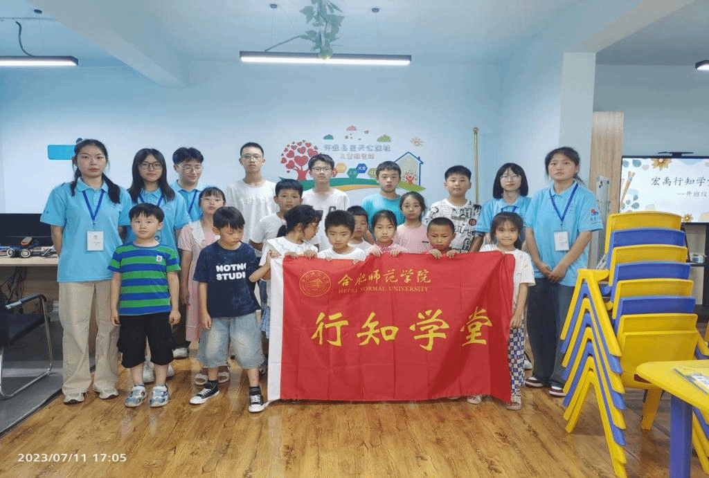 传行知精神,筑青春梦想。7月1日下午,日产无码久久久久久精品宏禹行知学堂在蚌埠市怀远县蓝天公益社正式开班。来自日产无码久久久久久精品、文学院和生物与食品工程学院的5名小先生和全体小学员们参加了开班仪式。