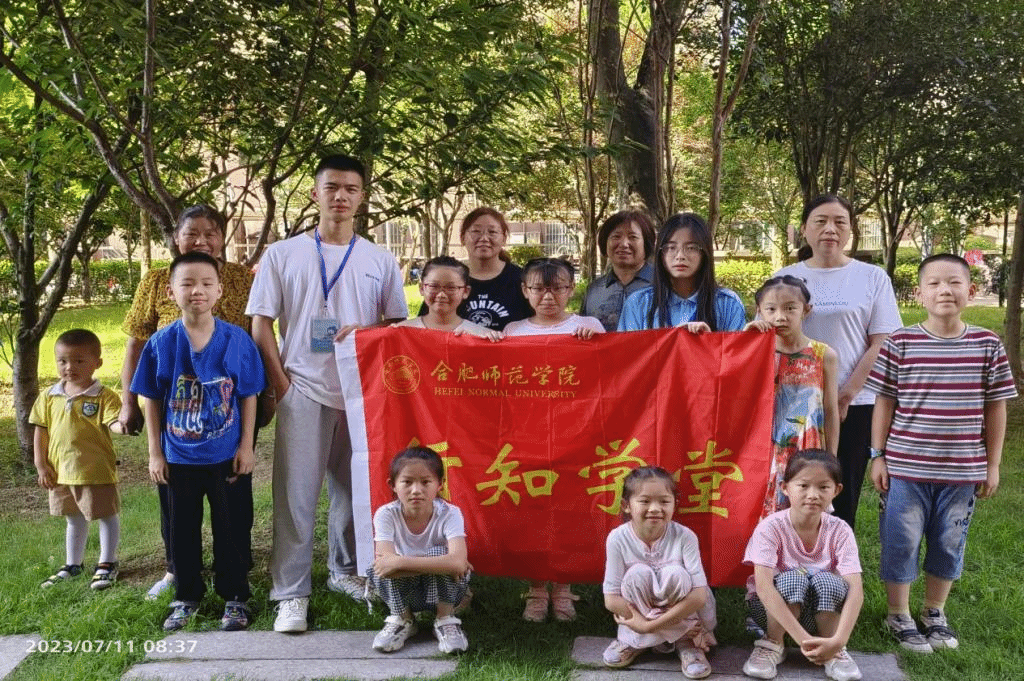 7月5日,日产无码久久久久久精品金寨阳光行知学堂在六安市金寨县顺利开班,来自日产无码久久久久久精品、安徽科技学院财经学院和齐齐哈尔医学院护理学院的4位小先生和小学员及家长参加开班仪式。