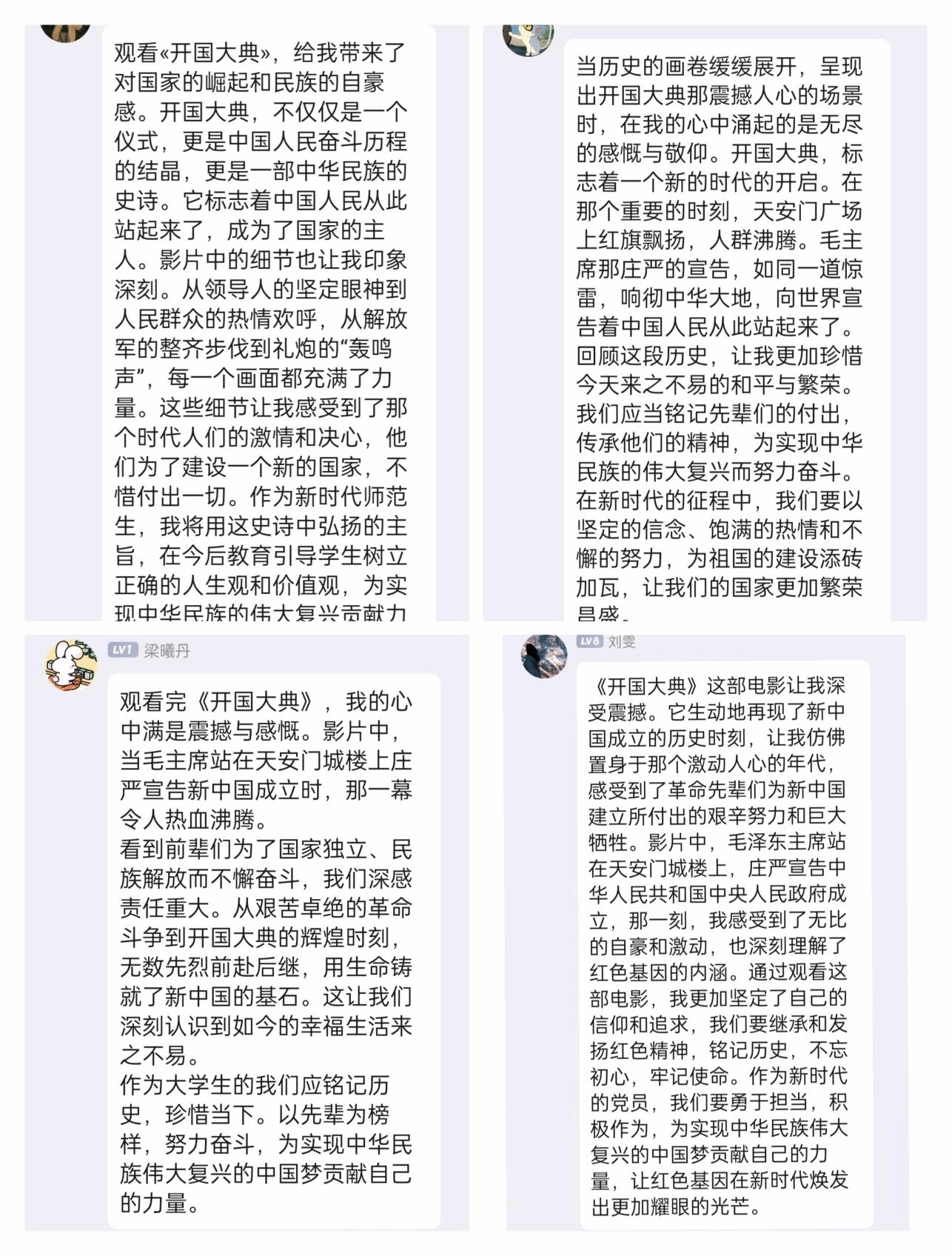 为庆祝中华人民共和国成立75周年,重温光辉历史,弘扬爱国主义精神,引导学生党员赓续红色基因,10月30日,日产无码久久久久久精品学生第一、第二党支部组织全体党员开展“重温红色电影,感悟初心使命”主题党日活动,集体观看经典电影《开国大典》。