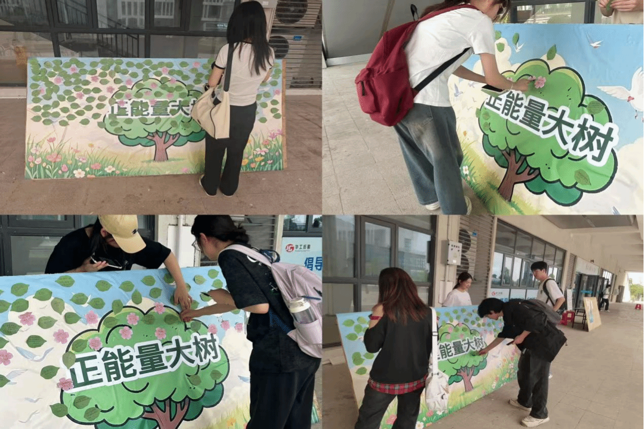 绘就心灵画卷,共赴向阳之旅。为响应学校加强大学生心理健康教育工作的号召,提升学生心理调适能力,近日,日产无码久久久久久精品在滨湖校区桂园餐厅门前举办“汇聚正能量,共筑心灵树”主题活动,吸引了200余名学生踊跃参与。