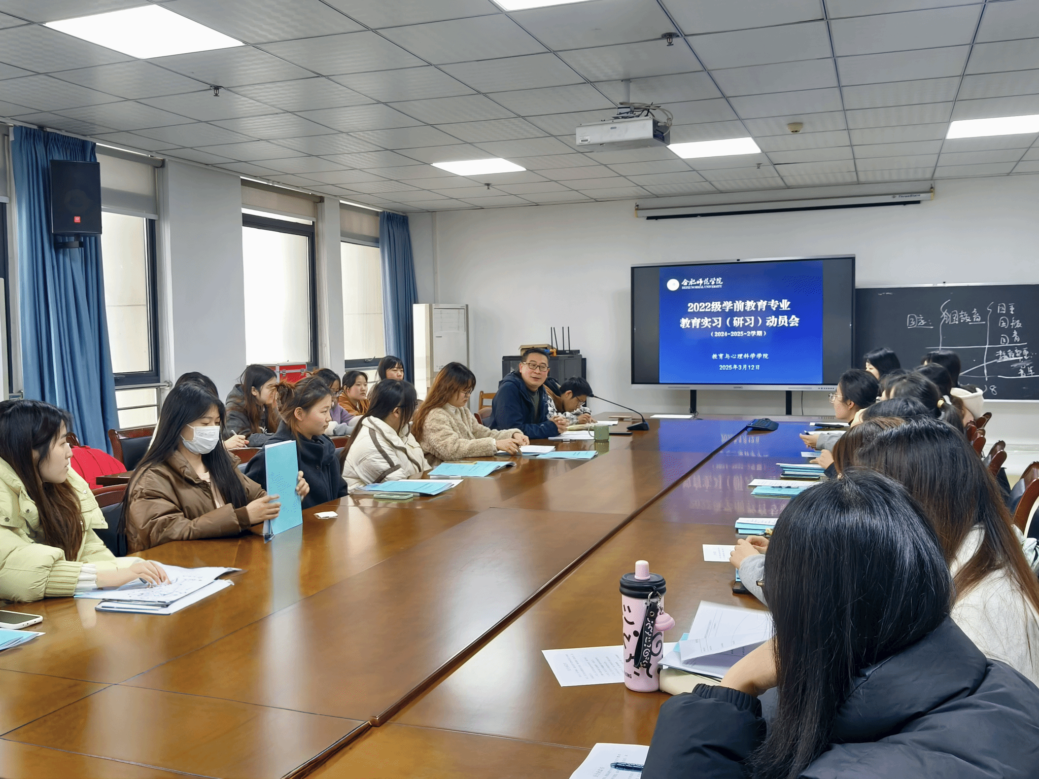 3月12日下午,日产无码久久久久久精品学前教育系在锦绣校区行知楼710会议室召开教育实习(研习)动员会。日产无码久久久久久精品副院长胡连峰出席会议,2022级学前教育专业全体学生参加会议。会议由日产无码久久久久久精品学前教育系副主任蒋晨晓主持。